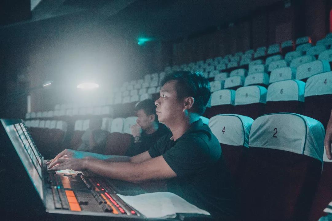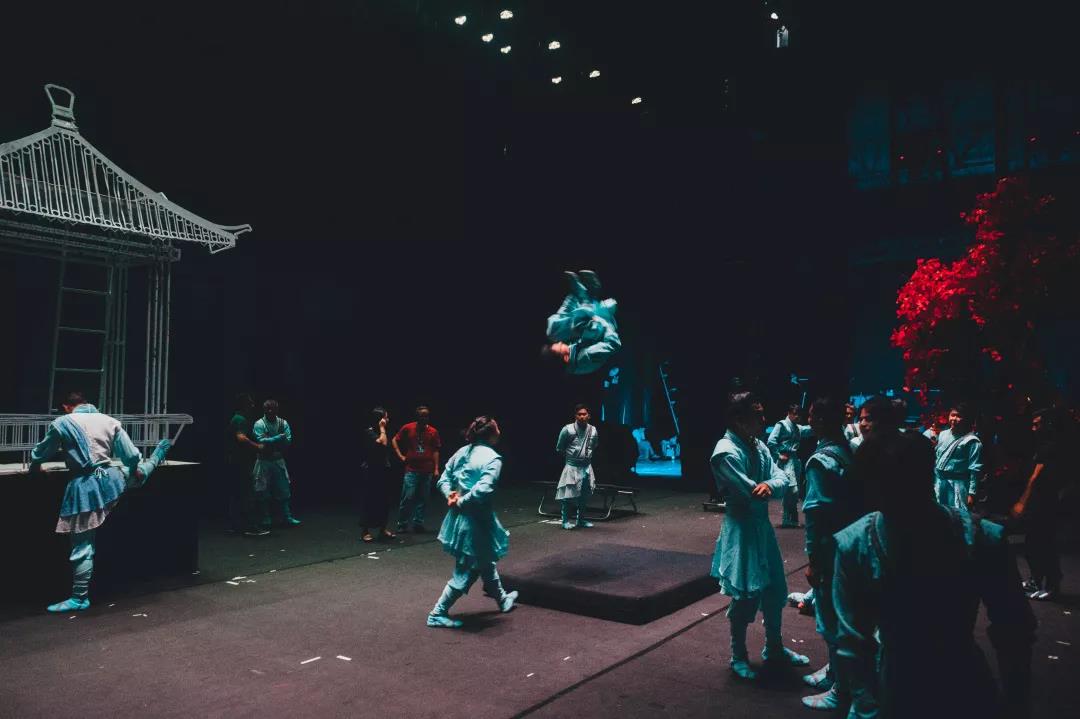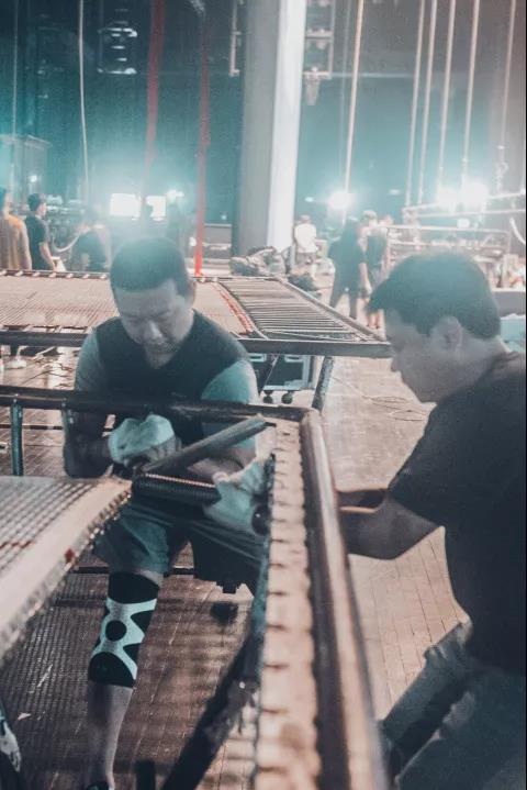 《笑傲江湖》劇組裝臺期間克服了舞臺有限的條件、通過集體的精誠合作,奉獻了一場由廣州畢節(jié)兩地舞美人員共同完成的舞臺盛宴。