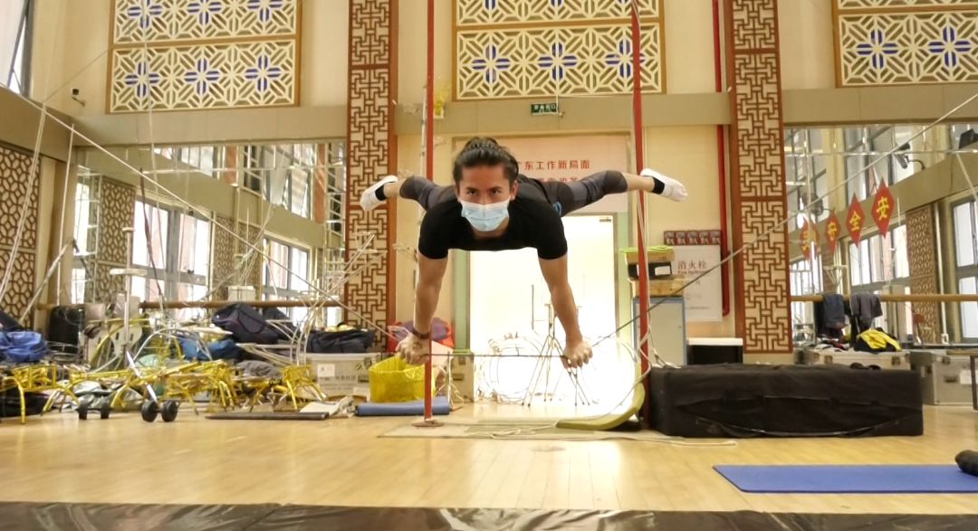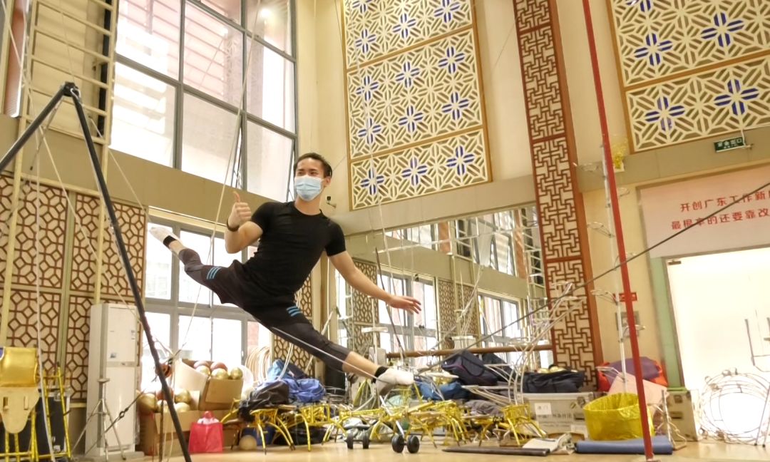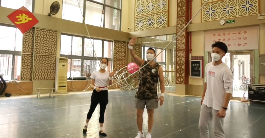 如吳正丹所感嘆的,“肩上芭蕾”的美麗是歷經(jīng)血與汗的苦澀才得以誕生的。在特殊時(shí)刻,直播鏡頭中可以看到許多雜技團(tuán)的演員們自覺(jué)戴著口罩積極訓(xùn)練,揮灑汗水磨練技藝。在吳正丹的講解中,技藝精湛的演員們?yōu)橛^眾展示了訓(xùn)練的日常。
