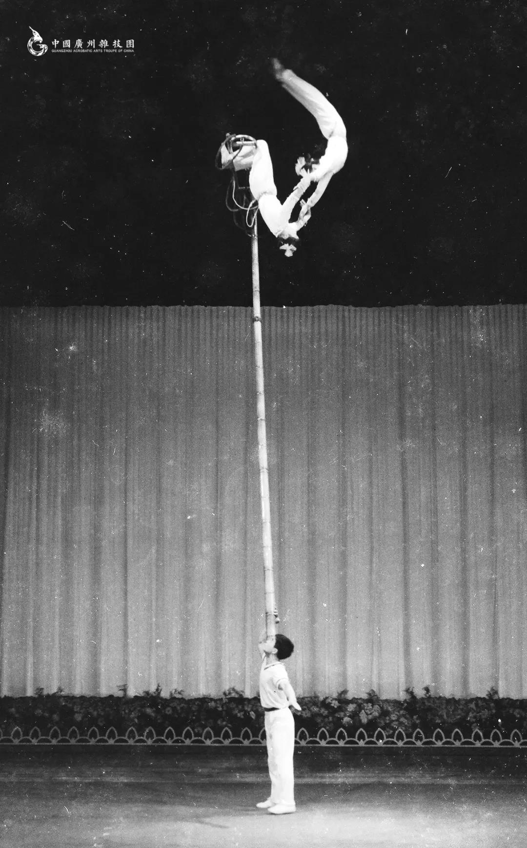 (廣州雜技團(tuán)演員李雪霞、張躍表演的《戴竿轉(zhuǎn)碟》)