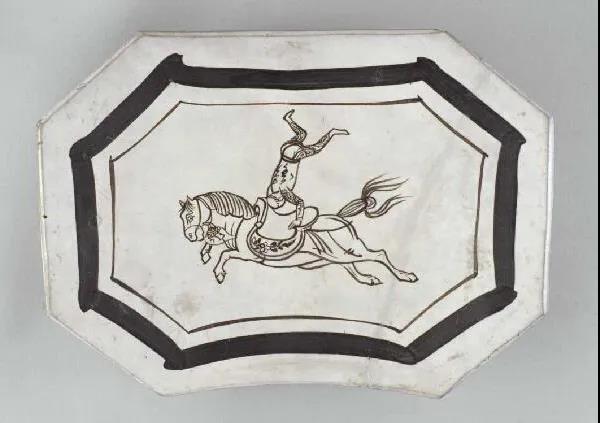 (宋代磁州窯白地黑花馬戲圖枕(張家造)故宮博物院藏)