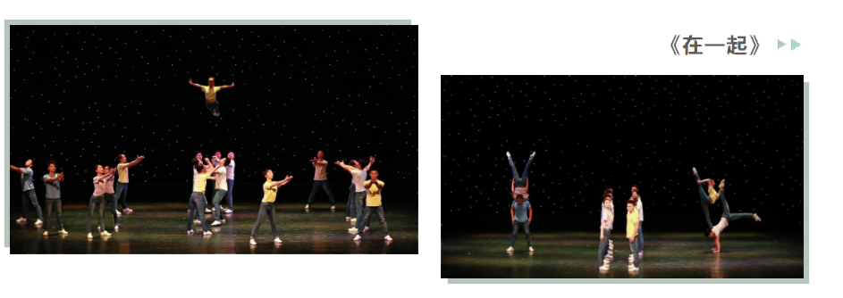 廣州市雜技藝術(shù)劇院創(chuàng)作的雜技情景節(jié)目《在一起》,由18位雜技演員共同完成,通過(guò)三組不同形式的對(duì)手技巧節(jié)目組合,分別從親情、友情、愛(ài)情視角表現(xiàn)人們?cè)诿媾R疫情時(shí)的臨危不懼、同舟共濟(jì)、眾志成城,最終共同戰(zhàn)勝疫情。他們的表演柔中見(jiàn)難,險(xiǎn)中生美,他們化身為奮斗在一線的英雄和群眾,眼神中都充滿希望和剛毅……
