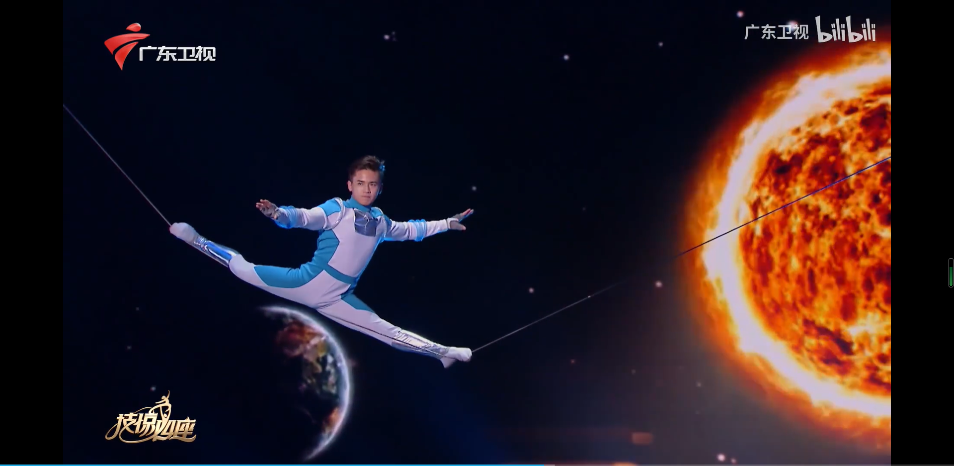 《星際逐夢(mèng)》表演者唐哲,年僅20歲便已是雜技表演行業(yè)的老將。5歲來(lái)到廣州雜技團(tuán),9歲開(kāi)始練習(xí)升降軟鋼絲,至今唐哲已在鋼絲上度過(guò)了近3萬(wàn)小時(shí),甚至連吃飯、睡覺(jué)都在鋼絲上完成,可以說(shuō)是“從小長(zhǎng)在鋼絲上”。多年來(lái),唐哲經(jīng)過(guò)頑強(qiáng)拼搏、刻苦訓(xùn)練,在軟鋼絲上如履平地,具有極佳的平衡能力。