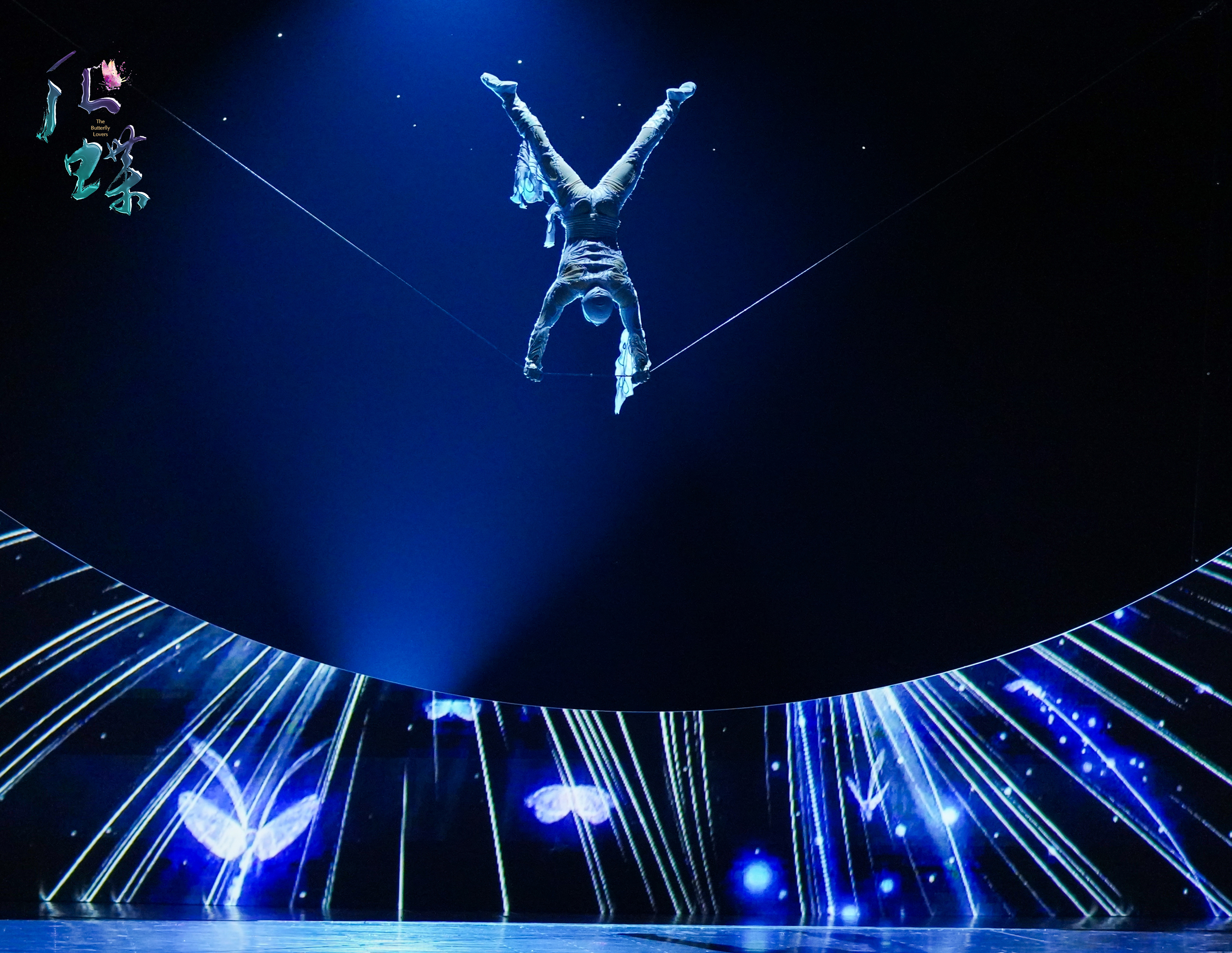 雜技在多數(shù)人心中僅是高難技藝的展現(xiàn),除了驚險(xiǎn)刺激便再無(wú)更多印象。但當(dāng)代雜技劇《化·蝶》將傳統(tǒng)的梁祝愛(ài)情故事作為主線,加入破繭化蝶的情節(jié),甚至一直延伸到當(dāng)代的城市生活,展示了莊周夢(mèng)蝶、物我兩忘的境界,使得全劇更加豐滿、情趣、曲折和意像。