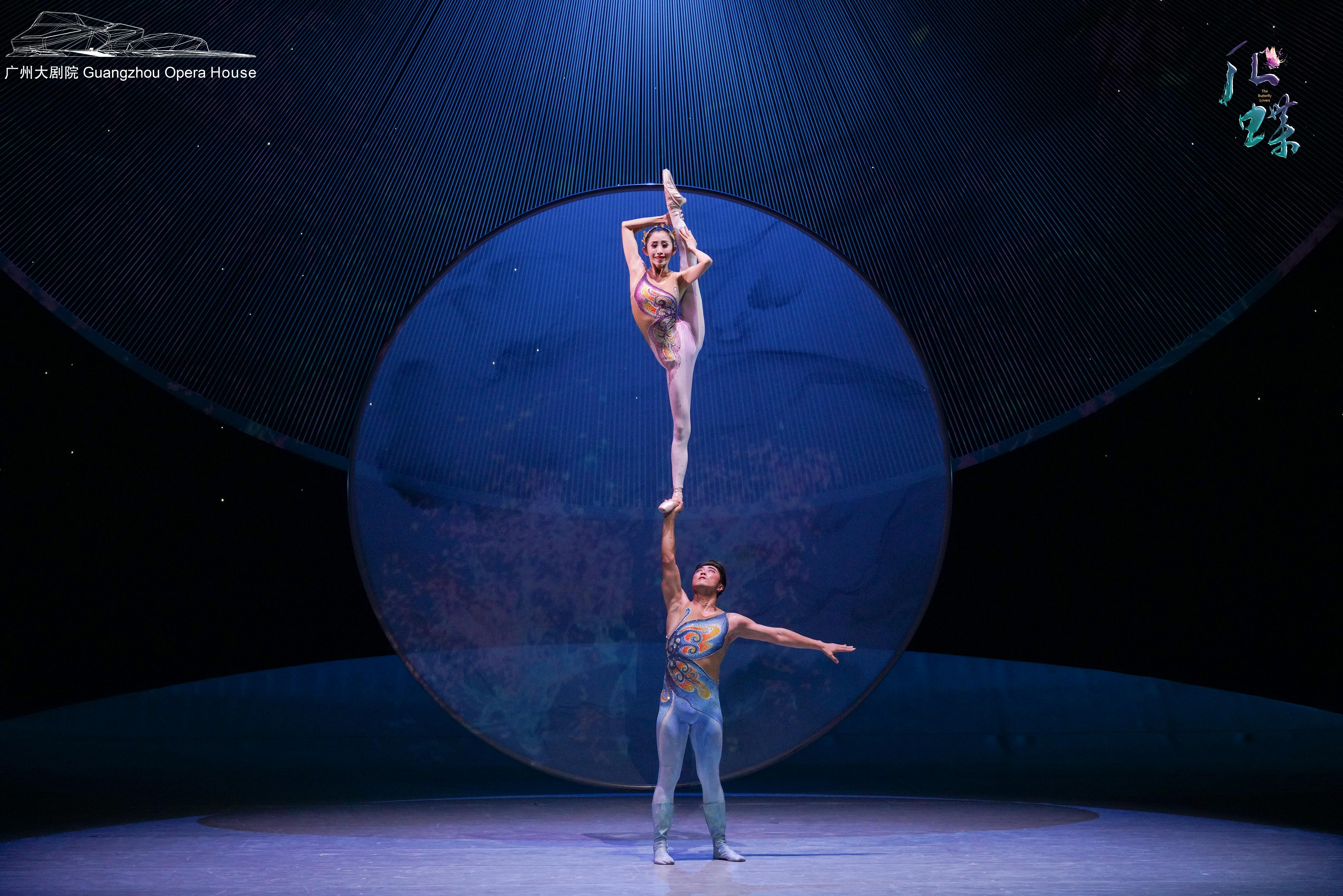 只是這時(shí)的我在想,這兩位加起來(lái)已然90歲的雜技藝術(shù)家,難道就這樣作為一部大劇的串演者嗎?!此時(shí),第二幕第五場(chǎng)《化蝶》閃耀亮相了:就雜技科目而言,兩位藝術(shù)家表演的還是“肩上芭蕾”——這是我在十五年前觀摩他倆演出雜技劇《天鵝湖》就已然見(jiàn)過(guò)的精彩,今日看來(lái)竟然毫不遜色,甚至在表演上可謂更臻成熟了。